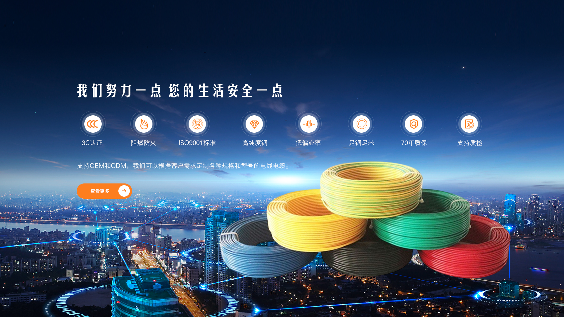 电缆系列:450/750V及以下铜芯聚氯乙烯绝缘电线(BV、BVR、BVV、BVVR、N-BV、WDZ-BYJ、RV)、300/500V及以下铜芯聚氯乙烯护套软电缆(RVV)、0.6/1KV铜芯交联、耐火、全塑(铠装)电力电缆(YJV、YJV22、N-YJV、N-YJV22、WDZ-YJV)、0.6/1KV铝芯交联、耐火、全塑(铠装)电力电缆(YJLV、YJLV22)、铝芯线(BLVV)、450/750V聚氯乙烯绝缘聚氯乙烯护套屏蔽控制电缆(KVVP22)450/750V聚氯乙烯绝缘聚氯乙烯护套控制电缆(KVV)、450/750V聚氯乙烯绝缘聚氯乙烯护套铠装控制电缆(KVV22)、450/750V聚氯乙烯绝缘聚氯乙烯护套屏蔽控制电缆(KVVP)、300/500V及以下平行线、绞型软线、红黑线(RVS、BVVB、RVB)等,并可根据客户需求定做各种规格型号电线电缆。