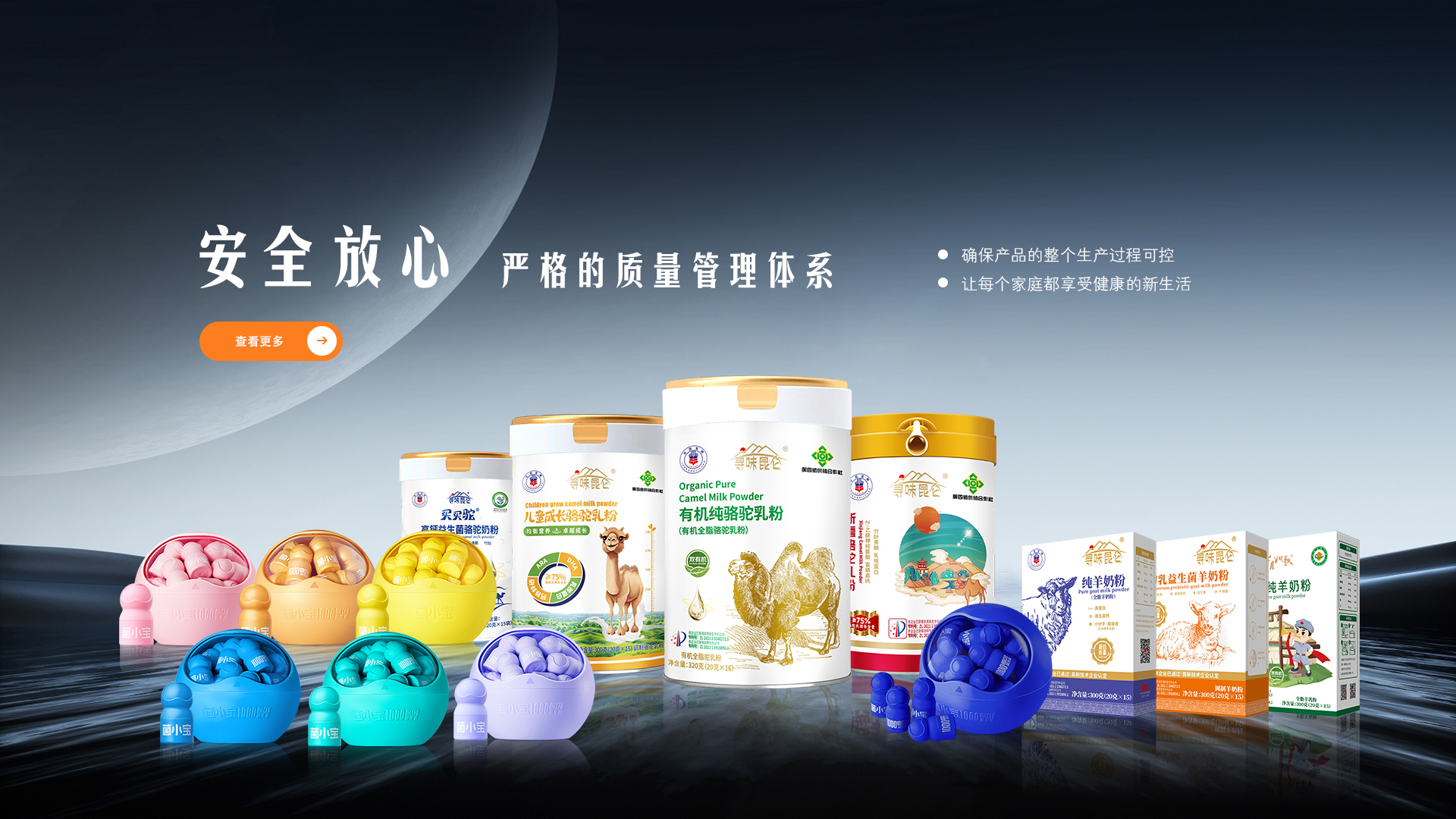 食品系列:益生菌、骆驼奶粉、羊奶粉、牛奶粉等;