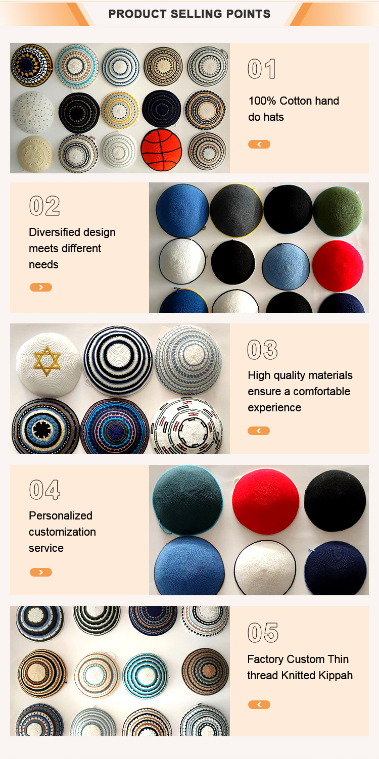 Discover the elegance and tradition of our Factory Direct Custom Thin Thread Knitted Kippah, meticulously handcrafted from 100% authentic DMC cotton yarn. As a professional manufacturer specializing in high-quality religious headwear, we take pride in offering beautifully made kippot (yarmulkes) that blend timeless craftsmanship with modern precision.
