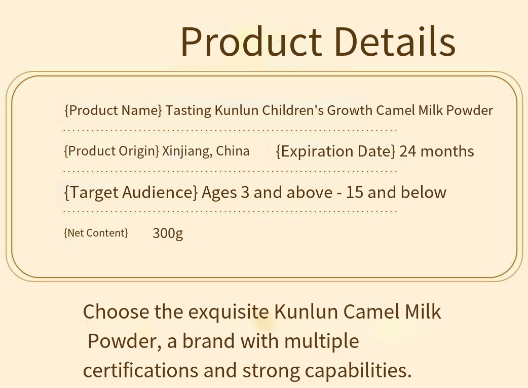 Kunlun Children’s Camel Milk Powder. youth milk powder, student camel milk powder, and wholesale of Xinjiang milk sources.
