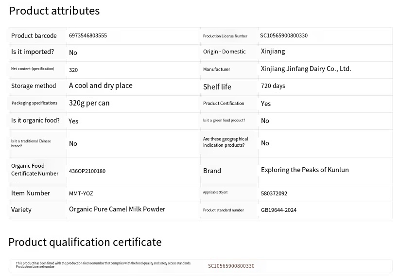 Kunlun Organic Whole Milk Camel Milk.for teenagers and students Camel Milk.Pure camel milk for the elderly and middle-aged.