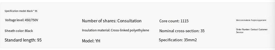 | Insulation & Sheath | Heat-resistant rubber; insulation thickness ≥0.8mm, sheath thickness ≥1.2mm; long-term working temp 65℃ (YHF up to 85℃), max outer diameter ≤19.0mm |